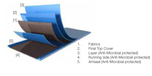 This technology complements rather than replaces a thorough and regular cleaning practice, which remains essential. In case of damage to the top cover, creating areas which are difficult to clean, the AntiMicrobial layer will assist in inhibiting the growth of bacteria. The Amseal sealed edge and the bottom cover or impregnation are treated with the same AntiMicrobial material.